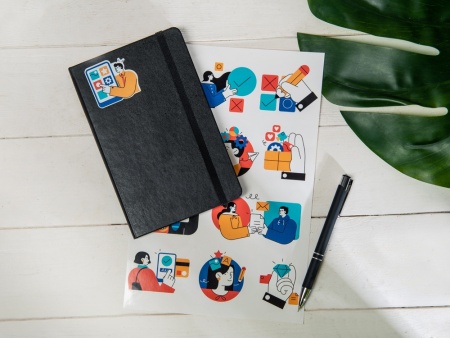 Наклейки формата А6 с ламинацией предназначены для создания индивидуальных стикерпаков под заказ.