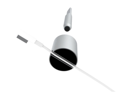 Сочетание двух полезных мелочей – стилуса и органайзера для проводов – в одном девайсе. Подставка для стилуса одновременно позволяет закрепить провод и аккуратно расположить его на письменном столе.