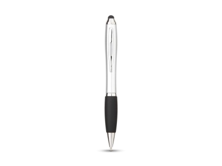 Nash - черная шариковая ручка со стилусом. При нажатии стилуса логотип подсвечивается в цвет стилуса. Включены 3 батареи LR41. ABS& AS plastic.