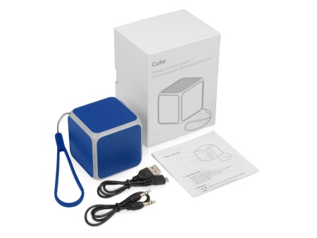 Портативная колонка Cube - это яркая колонка в форме куба в софт-тач исполнении. Имеется управляемая подсветка граней. Режимы подсветки (ритмичный или постоянный) и ее цвет можно переключить с помощью специальной кнопки. Беспроводная колонка умеет воспроизводить музыку с микро SD карты, через прямое подключение по AUX разъему, а также имеет режим FM радио и hands-free звонков. Для удобства транспортировки имеет силиконовую петельку. В комплекте зарядный USB кабель , AUX-кабель 3,5 мм и инструкция.