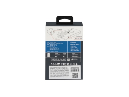 Литий-полимерный внешний аккумулятор емкостью 20000 мАч. Цифровой дисплей показывает уровень заряда. Защита от перегрузок, короткого замыкания, чрезмерного заряда и разряда. Автоматическое включение/выключение. Достаточно подключить кабель к разъему мобильного устройства и начнется заряд. Сквозной заряд - можно одновременно заряжать телефон и сам аккумулятор. Количество зарядов смартфона до 6 раз. (Зависит от емкости аккумулятора смартфона). ОСНОВНЫЕ ПРЕИМУЩЕСТВА: 4 встроенных кабеля - не надо искать подходящий кабель для Вашего телефона! Цифровой дисплей. Сквозной заряд.