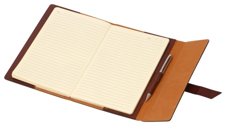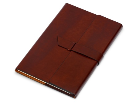 Бизнес-блокнот формата А5 в твердой обложке из искусственной кожи с ручкой в тон станет отличным подарком для любого клиента. Блокнот состоит из обложки с клапаном и сменного блока с линованными страницами.