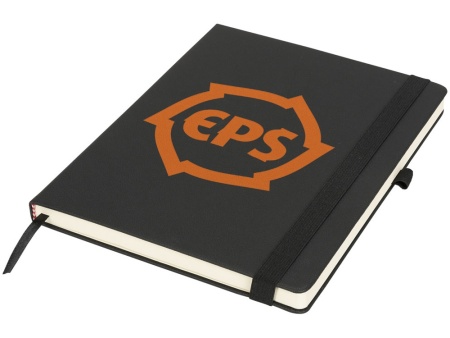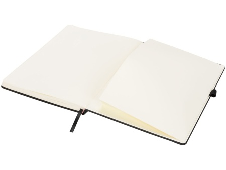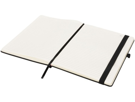 Блокнот Rivista большого размера. Блокнот Rivista отличается стильным современным дизайном с высококачественной обложкой, идеально подходящей для нанесения логотипа и информации вашей компании. Предлагаются современные цвета. Также предусмотрена эластичная застежка, держатель для ручки, лента-закладка и кармашек изнутри на задней стороне обложки. Содержит 128 листов линованной бумаги (70 г/м²) кремового цвета. ПУ.