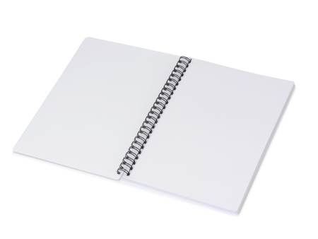Блокнот в белой пластиковой обложке отлично подойдет для нанесения логотипа. Удобное крепление на спирали.