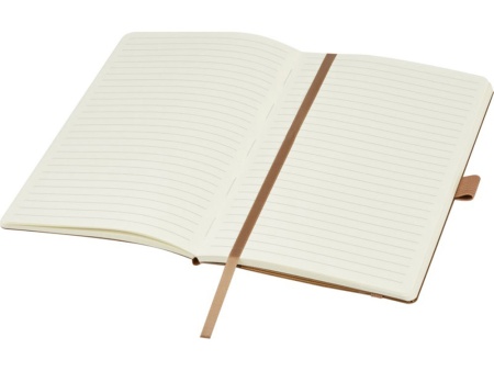 Блокнот из переработанной кожи с эластичным ремешком, петлей для ручки, закладкой, карманом из крафт-бумаги и 80 линованными листами кремового цвета из бумаги, переработанной по стандарту (70 г/м²). Обложка из переработанной кожи является стильным и износостойким верхним слоем, защищающим страницы внутри. Одним из преимуществ использования блокнота из переработанной кожи является комбинация стиля и экологичности. Уникальная текстура и внешний вид переработанной кожи придают каждому блокноту отличительный характер и индивидуальность.