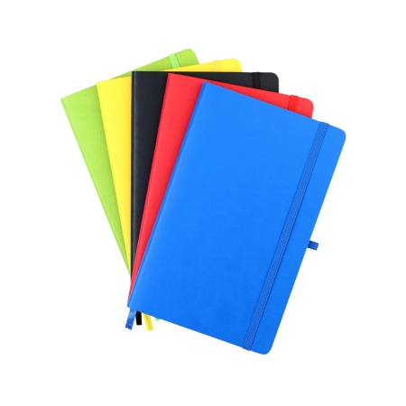 Блокнот формата А5 с мягким покрытием из PU-материала с имитацией рисунка кожи, с эластичной застежкой и текстильной закладкой, наличие петли для ручки в цвет блокнота, 192 страницы, плотность 70г/м, страницы с черными линиями. Цвет по PANTONE® (максимально приближен): 4154C.