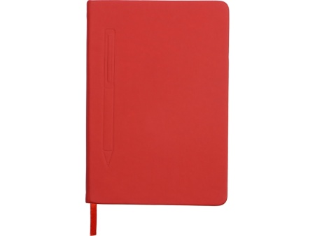 Блокнот формата А5 в твердой обложке со скруглёнными углами и блоком в линейку на 80 листов. Благодаря скрытой магнитной ленте на блокноте можно легко и надежно закрепить металлическую ручку. Зона с магнитом обозначена тиснением в форме ручки.