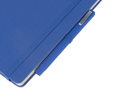 Лаконичный дизайн, приятная на ощупь твердая обложка имеет фактуру ткани. В блокноте 160 линованных страниц кремового цвета с плотностью 80 г/м2, петля для ручки, лента-закладка и удобный карман для карточек и записок.