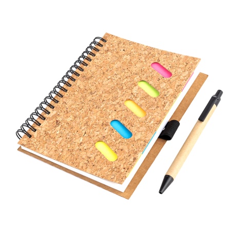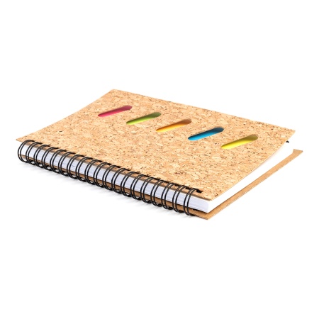 Блокнот на пружине и с пробковой обложкой.