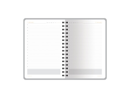 Гибкая (flex) обложка из фактурной высококачественной экокожи, скругленный угол обложки и блока, полускрытый гребень, позволяющий держать ежедневник открытым на столе и работать с комфортом, делая записи, серебряный обрез - все это визитная карточка ежедневника ORBIT от Bruno Visconti.
