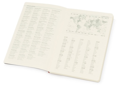 В ежедневнике Megapolis Flex есть полезная справочная информация и телефонная книга, а также страницы для записи идей, мыслей и составления рабочих планов. Для изготовления страниц используется качественный бежевый офсет повышенной плотности (70 г/кв м). Блок не привязан к конкретным датам – они указываются в выделенном поле вверху страницы. Тонированная бумага не дает глазам утомиться даже при длительной работе.