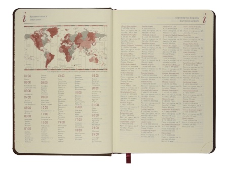 Незаменимый помощник в деле эффективного планирования благодаря высокому качеству производства и тщательно продуманных элементов: мягкая бархатистая обложка со скругленными уголками и строчкой по периметру в цвет, вырубные индексы с цветной маркировкой, разбивающей блок на месяцы, закладка-ляссе, перфорированные углы блока, линовка листов с указанием времени суток.