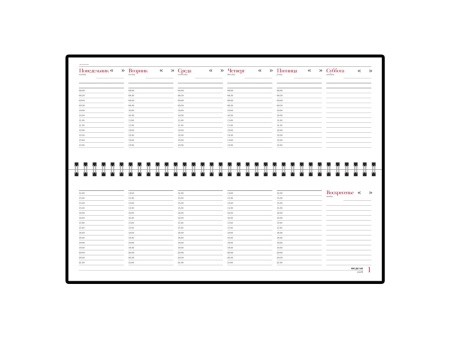Недатированный планинг на гребне, цвет черный, твердый переплет, 128 страниц. Плотность бумаги 70 грамм высшего сорта. Печать в 2 краски.