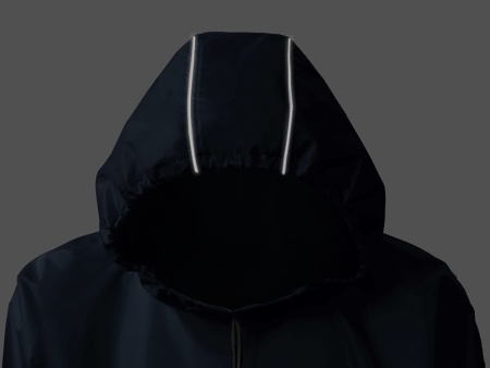 Швы капюшона и рукавов отделаны светоотражающим кантом, который делает человека заметным даже в темное время суток. Для комфортной посадки — затягивающийся на шнурок капюшон с фиксатором и манжеты на резинке.