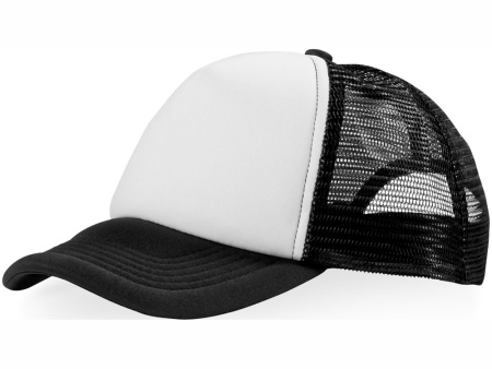 Кепка из 5 панелей Trucker. Оригинальная кепка на окружность головы 58 см с передней поролоновой частью, пластиковой сеткой сзади и пластиковой застежкой. Эта кепка полностью соответствует требованиям к соединениям AZO, формальдегиду и ПХФ. Полиэстер и поролон.