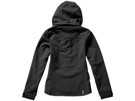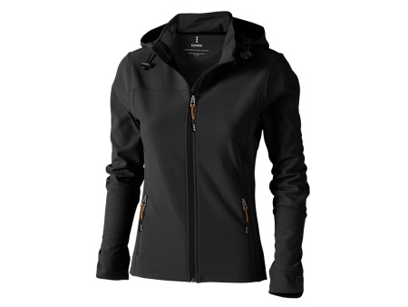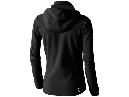 Женская куртка софтшел Langley. Стандартный покрой. Отстегивающийся капюшон на шнурках со стопперами. Обратная молния по центру и на карманах для рук. Регулируемые манжеты на липучках. Отражающий лого сзади. Водонепроницаемый 5000 мм. Дышащий 3000 мм. Ткань эластична в четырех направлениях. Ветронепроницаемая. Ремешки на собачку (второй комплект в цвете антрацит). Ткань из 90% полиэстера и 10% эластана, склеенного со 100% полиэстеровым микрофлисом. 300 г/м².