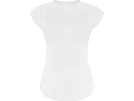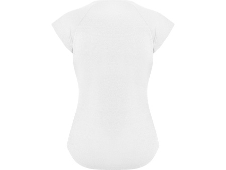 Спортивная женская футболка с коротким рукавом реглан. Вырез горловины V. Полотно из полиэстера на ощупь напоминающее хлопок. Приталенный силуэт.
