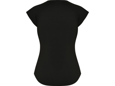 Спортивная женская футболка с коротким рукавом реглан. Вырез горловины V. Полотно из полиэстера на ощупь напоминающее хлопок. Приталенный силуэт.