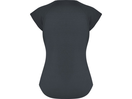 Спортивная женская футболка с коротким рукавом реглан. Вырез горловины V. Полотно из полиэстера на ощупь напоминающее хлопок. Приталенный силуэт.