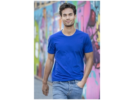 Мужская футболка Balfour с коротким рукавом из органического материала. Воротник из ткани изделия. Круглый вырез горловины. Стрейтч-ткань. Двойная строчка на воротнике и внизу изделия. Атласная лента от плеча к плечу. Комфортный ярлык-трансфер на изделии. Одинарный джерси 95% GOTS certified organic cotton, 5% Эластан, 200 g/m2.