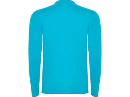 Детская футболка с длинным рукавом без швов. Горловина с двойной отстрочкой дополнительно укреплена по спинке тесьмой. Модель без манжет.