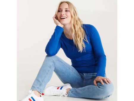 Женская футболка с длинным рукавом полуприлегающего силуэта. Модель без манжет.