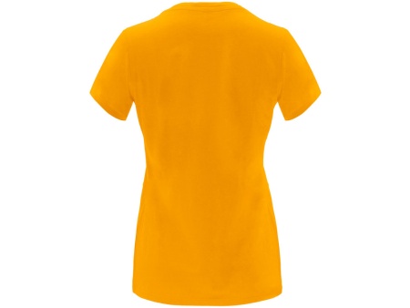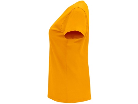 Женская приталенная футболка. Круглый вырез горловины обработан рибом 1х1. Шов горловины укреплен тесьмой.