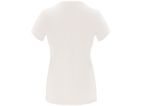 Женская приталенная футболка. Круглый вырез горловины обработан рибом 1х1. Шов горловины укреплен тесьмой.