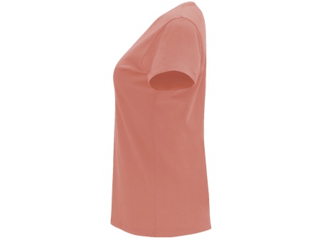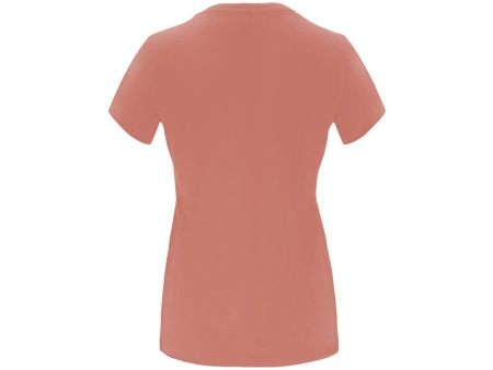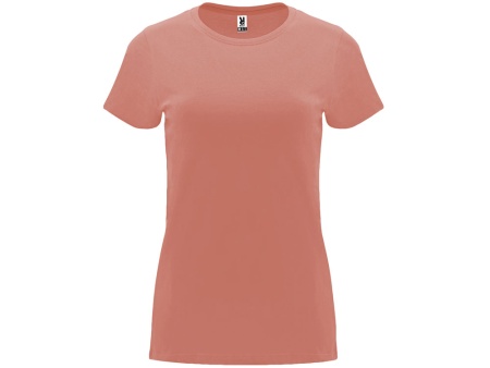Женская приталенная футболка. Круглый вырез горловины обработан рибом 1х1. Шов горловины укреплен тесьмой.