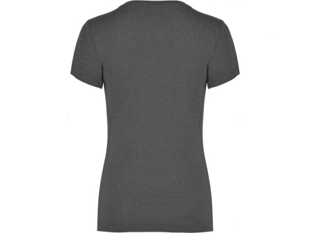 Футболка с коротким рукавом в меланжевом эффекте. Риб горловины 1х1 дополнительно укреплен двойной строчкой.