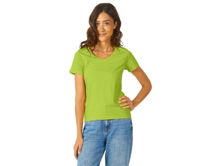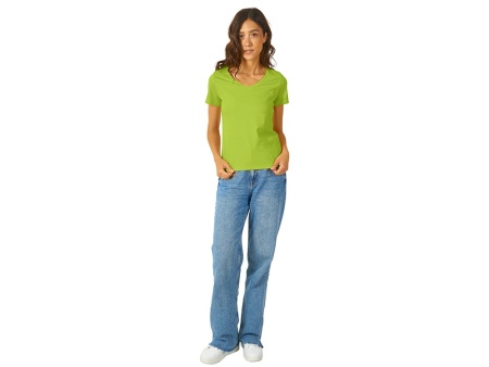 Женская футболка из натурального хлопка с элегантным V-образным вырезом. Материал отлично подходит для нанесения рекламной информации. Натуральная ткань не вызывает раздражения кожи.