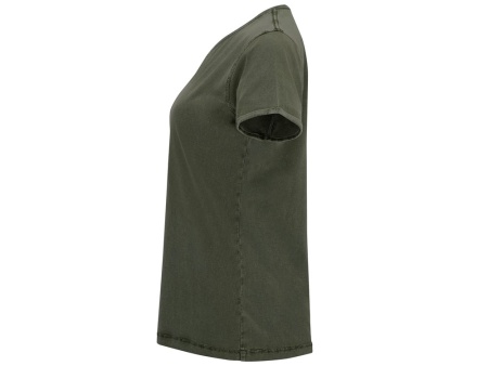 Женская футболка с джинсовым эффектом. Короткий рукав, горловина обработана рибом 1х1 и дополнительно укреплена тесьмой. Двойная отстрочка по пройме. Рукав с закручивающимся краем. В ассортименте также представлена аналогичная мужская модель Husky