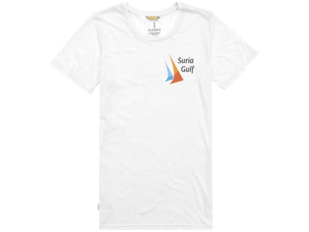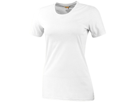 Женская футболка с короткими рукавами Sarek. Универсальный покрой. Воротник из ткани изделия. Сеточная строчка. Контрастная петелька внутри горловины. Однослойная джерси гладкого переплетения, 65% полиэстер и 35% хлопок. 120г/м2.