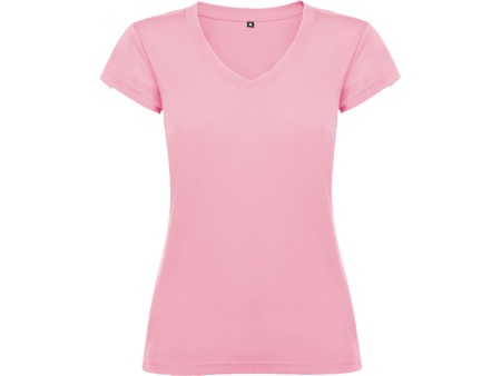 Женская футболка с коротким рукавом и V-образной горловине, обработано рибом 1х1. Полуприлегающий силуэт модели с боковыми швами.
