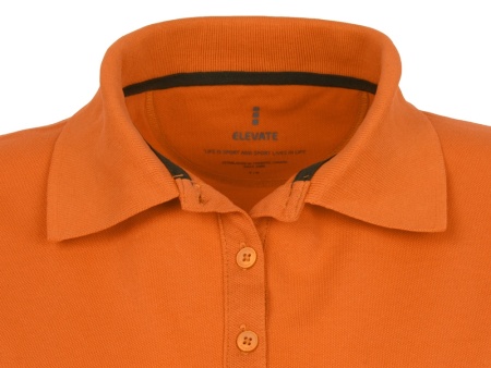 Женская рубашка поло с короткими рукавами Calgary. Стандартный покрой. Опущенный плечевой шов, цепная строчка. Мужская и детская модели на двух пуговицах. Женская модель с планкой на три пуговицы. Боковые разрезы с атласной лентой внутри. Детали со швами Pick-Stitch. Принт лого сзади в тон изделия. Атласная лента внутри горловины. Полумесяц. Резинка 1х1 на воротнике и манжетах. Трикотажное пике, 100% хлопок. 200 г/м².