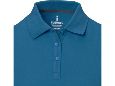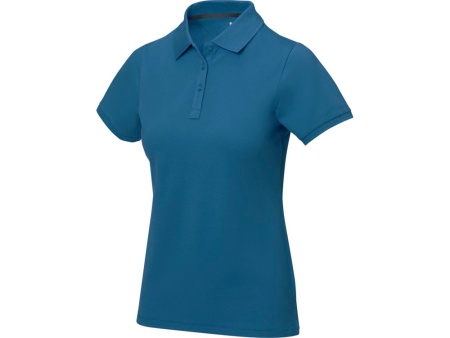 Женская рубашка поло с короткими рукавами Calgary. Стандартный покрой. Опущенный плечевой шов, цепная строчка. Мужская и детская модели на двух пуговицах. Женская модель с планкой на три пуговицы. Боковые разрезы с атласной лентой внутри. Детали со швами Pick-Stitch. Принт лого сзади в тон изделия. Атласная лента внутри горловины. Полумесяц. Резинка 1х1 на воротнике и манжетах. Трикотажное пике, 100% хлопок. 200 г/м².