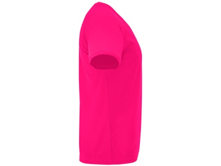 Спортивная футболка с коротким рукавом реглан. Круглый вырез горловины с отделкой плоским швом. Рукав сложного кроя для обеспечения дополнительного удобства при занятиях спортом. Отделка плоским швом с застилом по пройме и рукавам.