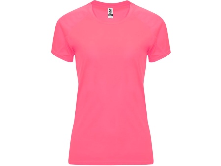 Спортивная футболка с коротким рукавом реглан для женщин. Круглый вырез горловины с отделкой плоским швом. Рукав сложного кроя для обеспечения дополнительного удобства при занятиях спортом. Отделка плоским швом с застилом по пройме и рукавам.