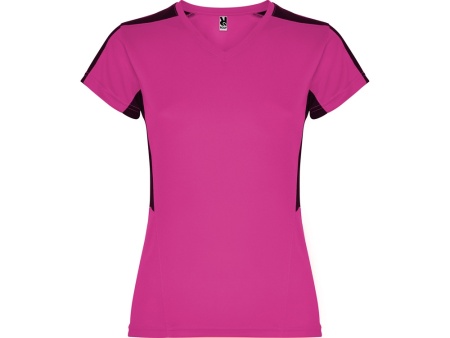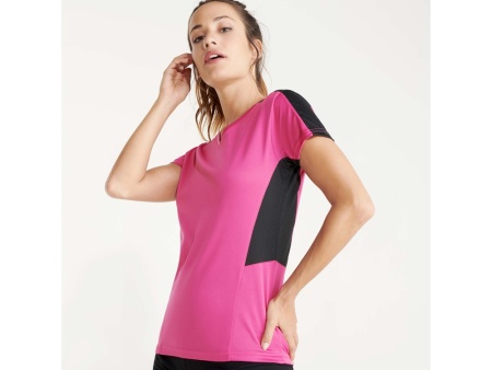 Женская футболка с коротким рукавом. V-образная горловина. Комбинация из 2 полотен контрастного цвета: структурное полотно на полочке и дышащая 3D сетка на плечах и боках.