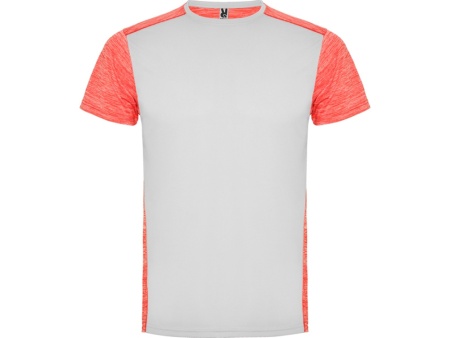 Футболка с коротким рукавом из технологического полотна. Круглый вырез горловины. Комбинация двух полиэстеровых полотен. Основное полотно на полочке со структурой, дополнительное полотно на спинке, рукавах и плечах с меланжевым эффектом. Задняя часть немного длиннее. Легко сохнущее дышащее полотно.