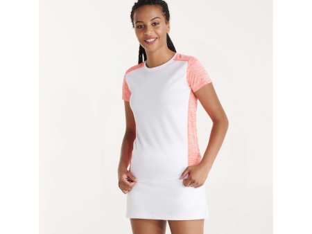 Футболка с коротким рукавом из технологического полотна. Круглый вырез горловины. Комбинация двух полиэстеровых полотен. Основное полотно на полочке со структурой, дополнительное полотно на спинке, рукавах и плечах с меланжевым эффектом. Задняя часть немного длиннее. Легко сохнущее дышащее полотно.