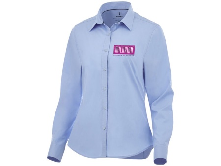 Женская рубашка с длинными рукавами Hamell. манжет на одной пуговице. Атласная окантовка внутренней части горловины. Швы моделирующие фигуру и приталенный крой. Гравированные пуговицы в цвет изделия. Комфортный ярлык-трансфер на изделии. Поплин из 96% хлопка и 4% эластана. 118 г/м².