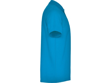 Поло с коротким рукавом, воротник из риба 1х1, планка застегивается на 3 пуговицы.