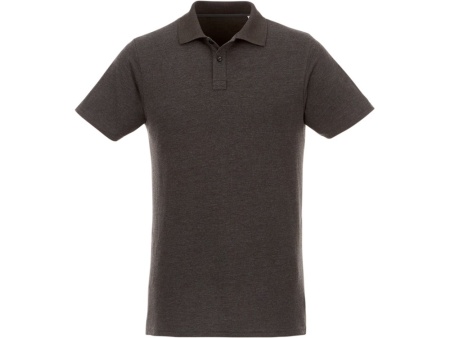 Мужское поло Helios с коротким рукавом. Отрезной-отрывной ярлык для комфорта. Воротник гладкой вязкой в рубчик. Планка с двумя пуговицами. Двойная строчка на воротнике и внизу изделия. Пуговицы в цвет изделия. Полоска на горловине в контрастном цвете. Трикотаж Piqué, 100 % хлопок. 180 г/м².