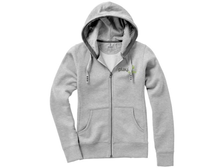 Женский свитер Arora с капюшоном и застежкой-молнией на всю длину. резинка 2х2 на боковых вставках, поясе и манжетах. Карман кенгуру. Мужская и женская модели с завязками на капюшоне. Подкладка внутри капюшона. Подкладка на полумесяце. Атласная лента внутри горловины. Контрастный цвет внутри капюшона. Принт лого сзади в тон изделия. Серебристые люверсы с лого. Трикотаж: 80% хлопок и 20% полиэстер, чесаная внутренняя сторона. 300 г/м².