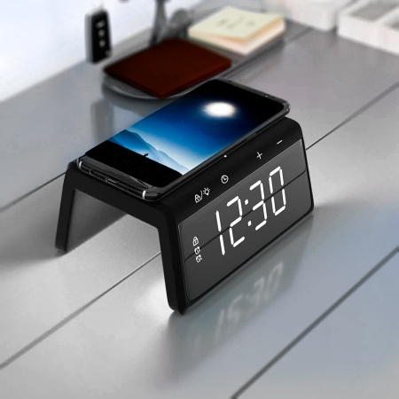 Часы Bridge великолепно сочитают функциональность и дизайн! Часы имеют функцию беспроводной зарядки, а также возможность быстрой зарядки Qi и зарядки дополнительных устройств через порт USB. Отличная яркость дислпея, которая имеет 3 уровня интенсивности свечения! А для поднятия настроения есть функция RGB регулировки света. И в завершение управление при помощи touch-screen кнопок делает эти часы легкими в использовании, современными и удобными. Мощность беспроводной зарядки 10W.