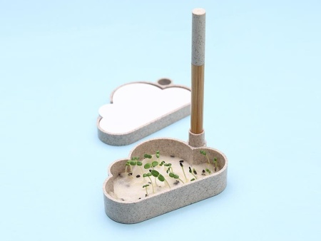 В набор для записей входят удобная подставка в форме облака из переработанной пшеницы, шариковая ручка-стилус из бамбука и переработанной пшеницы, бумага для записей и лист с семенами ромашки. Семена можно посадить как в самой подставке, так и в отдельном горшке. Также в наборе есть инструкция по выращиванию и уходу за ромашкой.