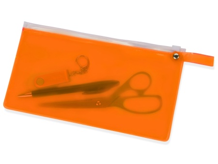 Яркий пенал из ПВХ закрывается на zip-замок. На этот пенал можно нанести название компании и вложить в него несколько сувениров небольшого размера.