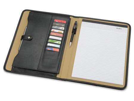 Отличная папка для документов с блокнотом и отделениями для визиток станет неотъемлемым атрибутом успешного бизнесмена. Папку можно подарить коллегам по работе, сотруднику или партнеру компании.