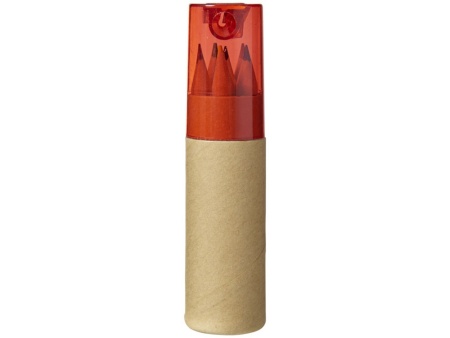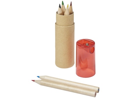 Набор содержит 6 цветных карандашей и футляр с крышкой-точилкой. Отличный вариант для создания оригинального промосувенира. Крышка позволит аккуратно собрать стружку в процессе подтачивания карандашей.